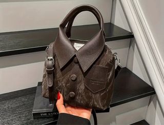 Borsa a mano o tracolla dal design unico a forma di camicia. - Dettagli effetto stropicciato. - Tasca frontale applicata. - Chiusura con bottoni. - Tracolla regolabile.