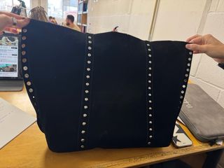 Bolso de mano o de hombro en color negro. Confeccionado en ante y adornado con tachuelas metálicas. - Diseño con tachuelas a lo largo de los laterales. - Material: Ante.