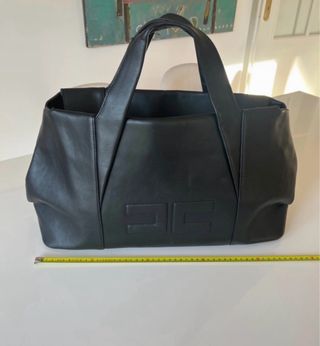 Borsa shopping Elisabetta Franchi in pelle nera. - Logo inciso sul davanti. - Manici morbidi. - Ampio scomparto interno. Qualche leggero segno sui manici, che non si vede quasi per nulla