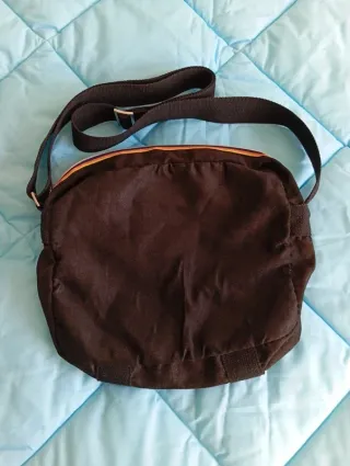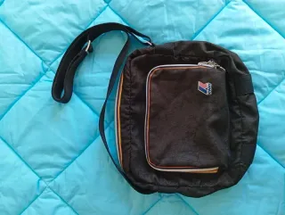Borsa a tracolla K-Way con un design pratico e versatile. - Logo K-Way applicato sul davanti. - Tasca frontale con zip. - Tracolla regolabile. - Dettagli colorati sui lati. Articolo in buone condizioni, materiale scamosciato con colorazione marrone scuro tendente al nero. Doppia cerniera, per la tasca principale e per la tasca che si apre sul davanti.