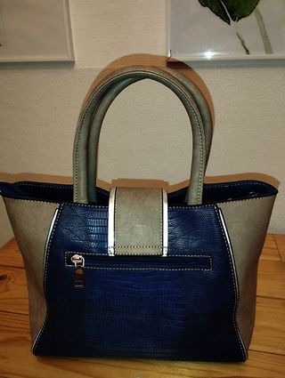 Borsa Blu Marino e Beige con Texture