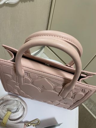 Borsa beige stile secchiello – H&M • Dimensioni: Compatte e pratiche, ideali per l’uso quotidiano • Materiale: Similpelle resistente, facile da abbinare e da pulire • Design: Stile moderno con cinturino decorativo frontale, look minimal ed elegante • Funzione: Capiente e funzionale, perfetta per tenere tutto l’essenziale • Colore: Beige neutro, versatile e adatto a ogni stagione • Condizioni: in ottime condizioni, presenta solo alcune parti in cui la pelle si é staccata sui manici