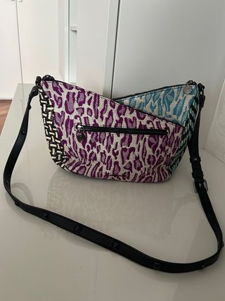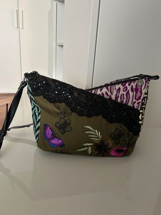 Borsa Desigual con un design unico e colorato. - Fantasia animalier e floreale. - Dettagli con paillettes e ricami. - Tracolla regolabile.