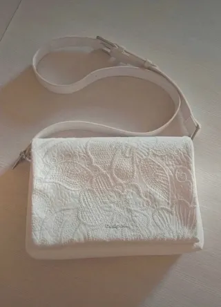 Borsa a tracolla Desigual in un elegante colore bianco. Presenta un design trapuntato con un motivo floreale in rilievo. - Tracolla regolabile e removibile - Chiusura con zip. - Dettaglio logo Desigual sul davanti.
