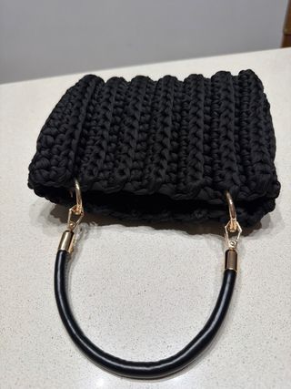 Borsa artigianale dal design unico. - Realizzata a mano con cura. - Dettagli in metallo dorato. - Manico in ecopelle nera.