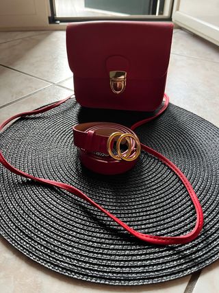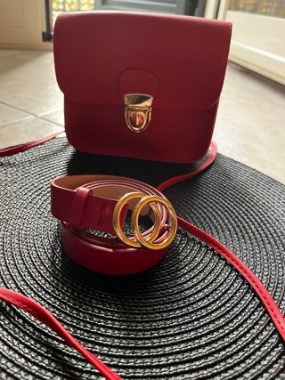 Elegante pochette rossa, perfetta per completare il tuo look. Include una cintura coordinata con fibbia dorata. - Pochette in ecopelle. - Cintura con doppia fibbia dorata.