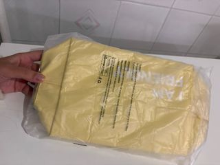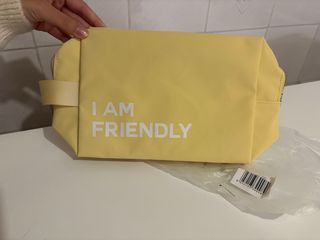 Pochette Carpisa di colore giallo, con scritta I AM FRIENDLY. - Chiusura con cerniera. - Pratica maniglia laterale.