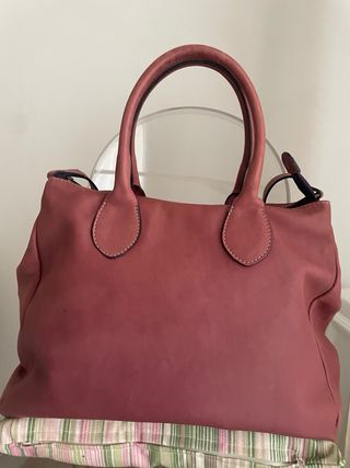 Borsa vera pelle,a braccio munita di tracolla mobile,chiusura zip,interno foderato con taschino,rosa scuro,buono stato,segni come da foto