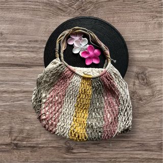 Borsa a rete con strisce colorate. Perfetta per un look casual. - Motivo a righe verticali. - Manici intrecciati.