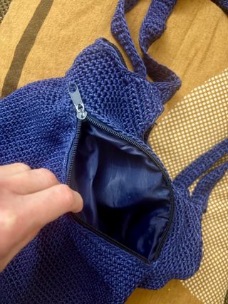 Pratica borsa a tracolla, esternamente lavorazione tipo uncinetto e internamente foderata. Chiusura con cerniera. Tasca esterna foderata e con chiusura con cerniera. Taschino interno capiente, foderato e con chiusura con cerniera.