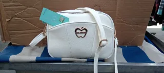 Elegante pochette bianca con tracolla regolabile. Perfetta per ogni occasione. - Logo a forma di mela sul davanti. - Chiusura con cerniera. - Tracolla in ecopelle con fibbia regolabile.