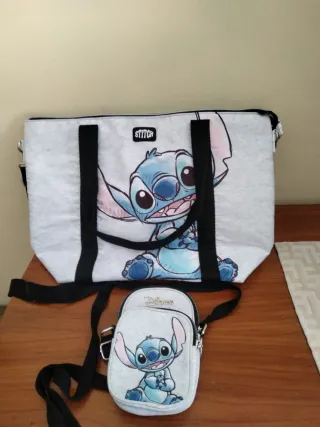 Set composto da una borsa e un borsello coordinati, entrambi con stampa del personaggio Stitch. - Borsa capiente con manici. - Borsello piccolo con tracolla.