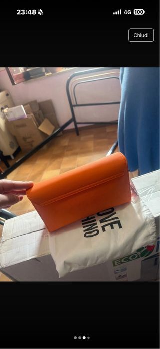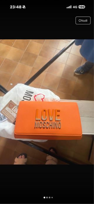 Borsa a mano o a tracolla Moschino. - Logo LOVE MOSCHINO in rilievo sul davanti. - Colore arancione vivace. - Design moderno ed elegante. Ha solo quella piccola macchia mi e arrivata cosi