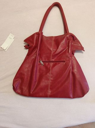 Borsa a mano con un design bicolore che combina il rosso e il bianco. Nuova come acquistata in negozio Molto capiente ( misure in foto) Tracolla regolabile - Manico singolo. - Dettagli in metallo. - Chiusura con zip.