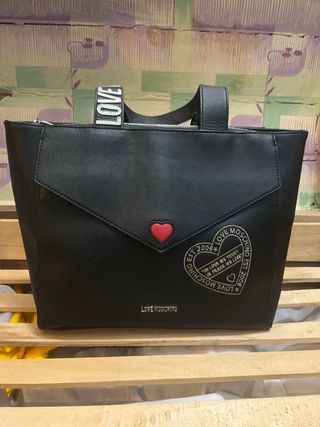 Elegante borsa a spalla Love Moschino in ottime condizioni. Presenta un design raffinato con dettagli unici. - Logo LOVE sul manico. - Piccolo cuore rosso applicato sul davanti. - Stampa circolare LOVE MOSCHINO EST 2008 sul lato. - Scritta LOVE MOSCHINO in rilievo sul fondo.