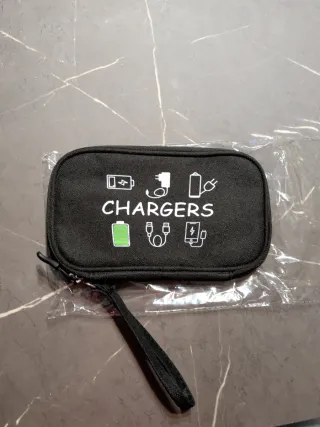 Pratica pochette per organizzare i tuoi caricatori e accessori elettronici. - Design compatto e funzionale. - Chiusura con zip. - Laccetto per un facile trasporto.