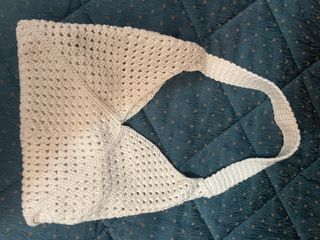 Borsa a spalla realizzata interamente a mano con tecnica all'uncinetto. - Design unico e artigianale. - Materiale morbido e resistente. - Forma a triangolo. - Tracolla comoda.