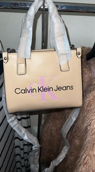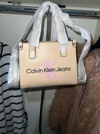 Borsa Calvin Klein Jeans nuova, mai utilizzata. - Colore beige con logo rosa. - Design compatto e moderno. lunghezza 17cm larghezza 22 cm
