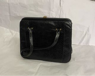 Elegante borsetta vintage in lucertola - Materiale: pelle di lucertola - Chiusura a scatto dorata. - Manico rigido. - Design classico e raffinato.