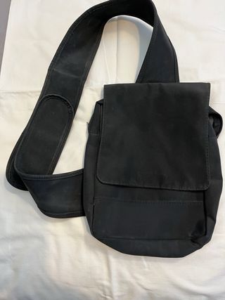 Borsa a tracolla di colore nero. Misura 30 x 21 - Tracolla regolabile. - Chiusura con patta. - Tessuto resistente.