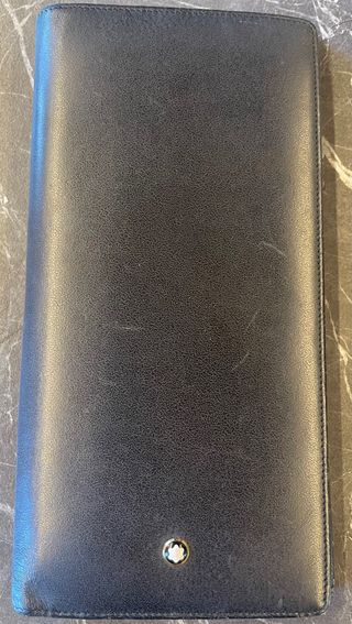 Elegante portafoglio Montblanc, un accessorio raffinato. - Logo Montblanc distintivo. - Materiale in pelle texturizzata. - Porta spiccioli e carte di credito. Dimensioni 18,5x9 cm Leggeri segni di usura come da foto