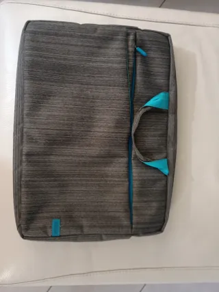 Cartella pratica e resistente, ideale per lavoro, studio o viaggi. Struttura imbottita per proteggere notebook e documenti. Ampio scomparto principale con chiusura a zip, tasca frontale con zip per accessori, manici rinforzati e tracolla regolabile e removibile. Materiale robusto e finiture curate. Dimensioni indicative visibili in foto con metro (adatta a laptop fino a circa 15–16”). 46 cm x 33 cm Colore: grigio con inserti azzurri. Usata poco, pulita e senza difetti evidenti. Perfetta come borsa da lavoro, porta PC o per l’università.