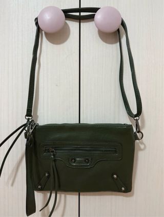 Elegante borsetta in una tonalità verde oliva. - Design compatto e versatile. - Dettagli metallici. - Tracolla regolabile.