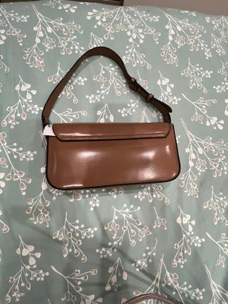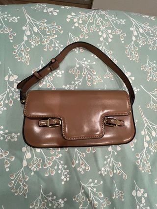 Elegante borsa a tracolla di colore marrone, perfetta per ogni occasione. Presenta un grazioso fiocco decorativo sul davanti. Mai indossata - Materiale similpelle. - Tracolla regolabile. - Chiusura con zip.