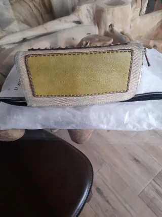 Borsa grande usata, con evidenti segni di usura ma ancora utilizzabile. La borsa piccola invece è nuova, mai utilizzata.