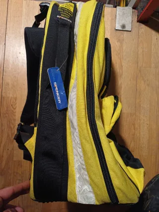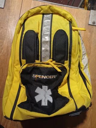 Zaino professionale per soccorso, marca Spencer. - Colore giallo brillante con dettagli neri. - Logo Star of Life argentato sul davanti. - Tasca frontale con zip. - Strisce riflettenti verticali.