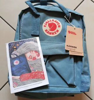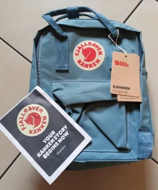 Zaino Fjällräven Kånken modello 7L. - Colore Celeste chiaro. - Logo Fjällräven Kånken sul davanti. - Etichetta Kånken Original inclusa.
