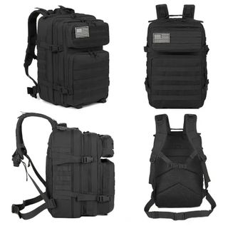 Zaino da trekking in tessuto resistente, ideale per escursioni e attività all'aperto. - Design tattico con sistema MOLLE. - Patch bandiera americana inclusa. - Diverse tasche e scomparti per organizzazione. - Spallacci imbottiti regolabili.