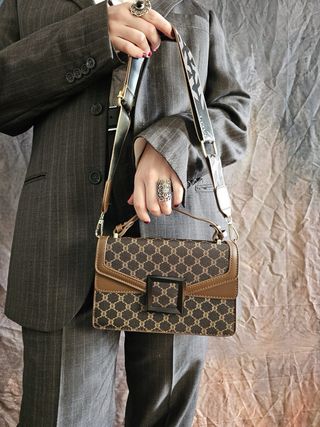 Borsa da donna dal design raffinato, perfetta per completare un look sofisticato. - Motivo monogramma all-over. - Dettagli in pelle. - Chiusura con fibbia. - Tracolla regolabile.