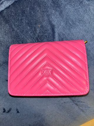 Elegante borsa in pelle di colore rosa. - Design trapuntato a chevron. - Logo centrale.