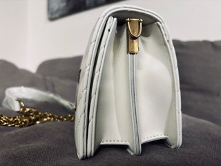 Elegante borsa bianca con tracolla. - Dettagli trapuntati. - Chiusura a girello dorata. - Tracolla a catena dorata.