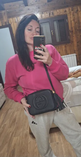 Elegante borsetta a tracolla, nuova e mai usata. Vera pelle. Regalo ricevuto a Natale, ma per me troppo piccola. Tolta dalla confezione per fotografare - Tracolla regolabile con moschettoni dorati. - Chiusura con fibbia e linguetta. - Design