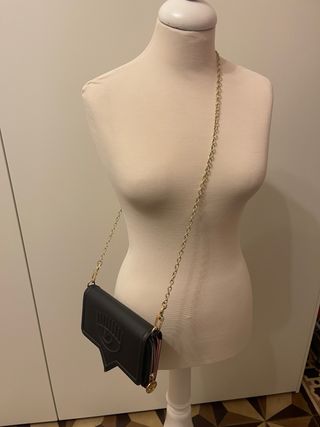 Borsa a tracolla Chiara Ferragni. Chiara Ferragni, borsa a tracolla con catenella Altezza del manico 47 cm, Profondità 5 cm, Altezza 11 cm, Lunghezza del manico 116 cm, Larghezza 18 cm, materiale sintetico, tinta unita, brand logo, chiusura a calamita, interno foderato, tracolla removibile, modello small, mai messa
