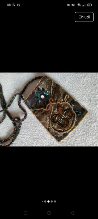 Piccola borsetta decorata con perline e dettagli. - Tracolla lunga in perline. - Motivo floreale e decorazioni applicate.