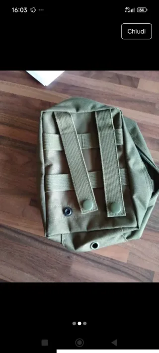 Marsupio tattico in tessuto resistente, ideale per escursioni o attività all'aperto. - Chiusura con bottoni a pressione. - Passanti per aggancio a cinture o zaini. - Occhiello di aerazione sul fondo.