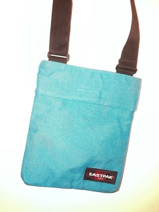 Borsello a tracolla Eastpak turchese con tracolla nera. Tracolla regolabile. Chiusura principale a zip, chiusura frontale con velcro.