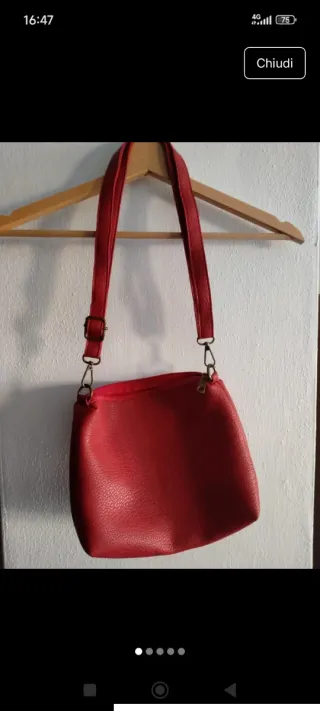 Borsetta di colore rosso, perfetta per ogni occasione. - Materiale in similpelle. - Tracolla regolabile.