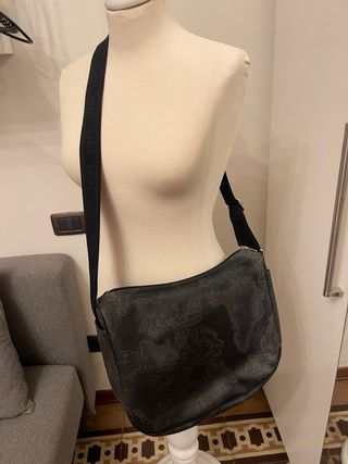 Borsa a tracolla Alviero Martini in pelle nera con stampa Geo misura cm 34x30 cm presenta un piccolo difetto come da foto, ma impercettibile - Tracolla regolabile. - Tasca esterna con zip. - Dettagli in metallo ottime condizioni