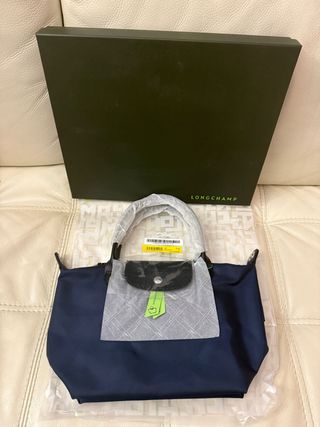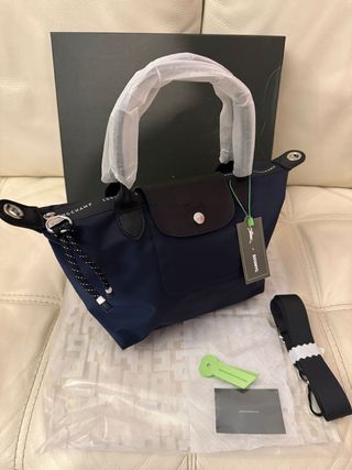 Borsa Longchamp originale, nuova e mai usata, completa di scatola e cartellino. - Colore blu navy. - Dettagli in pelle nera. - Materiale resistente e leggero. - tracolla inclusa - scatola originale inclusa - dustbag trasparente originale inclusa - made in France - moda Parigina