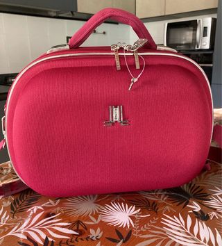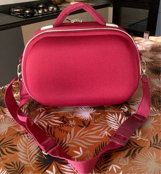 Beautycase da donna Lancetti rosso con manico e tracolla che si può togliere. Chiusura con zip. Capiente all'interno con diversi scomparti. Perfetto senza segni nè macchie