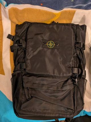 Zaino Stone Island nero, perfetto per l'uso quotidiano o per i viaggi. - Logo Stone Island sul davanti. - Tasche esterne con zip. - Spallacci regolabili.