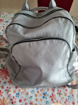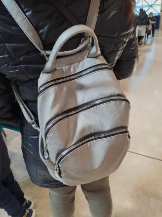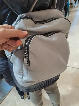 Zaino da donna in pelle grigia. - Design moderno con zip. - Materiale: similpelle.
