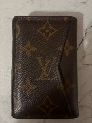 Elegante porta schede Louis Vuitton. - Motivo monogramma iconico. - Finitura in pelle testurizzata.