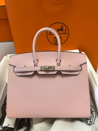 Elegante borsetta Hermès di colore rosa. - Materiale testurizzato. - Dettagli metallici. - Manico superiore.