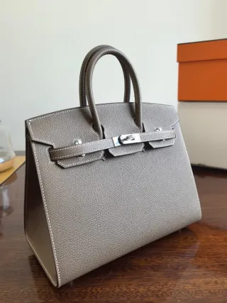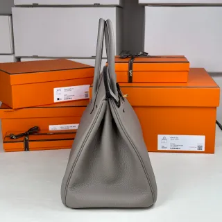 Borsa a mano in pelle grigia. - Modello Birkin 30. - Pelle Veau Togo. - Dettagli in metallo dorato.