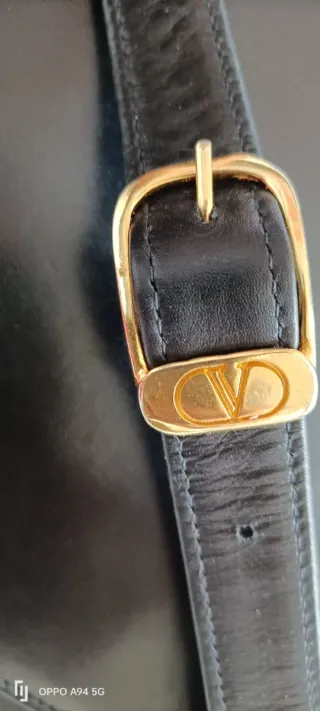 Bellissima borsa a tracolla in pelle nera, un pezzo vintage firmato Valentino Garavani. La sua linea pulita ed elegante la rende perfetta per ogni occasione. La scritta è cancellata - Materiale: Pelle liscia e lucida. - Tracolla regolabile con fibbia dorata. - Logo V dorato sulla fibbia.